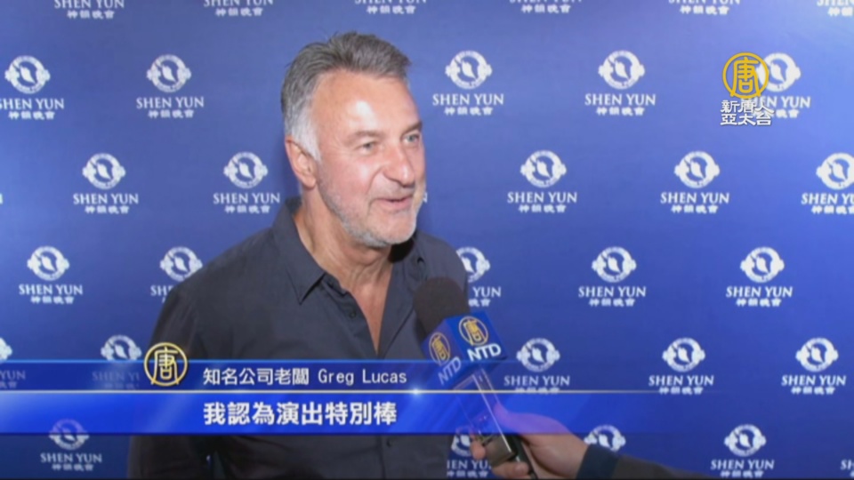 知名公司老闆 Greg Lucas:「我認為神韻復興中華傳統文化是一件了不起的事情。演出的一大吸引力實際上是其背後豐富的歷史文化,我認為中國應該珍視其歷史,並將其傳承下去,就像這些神韻舞蹈演員所做的一樣。」