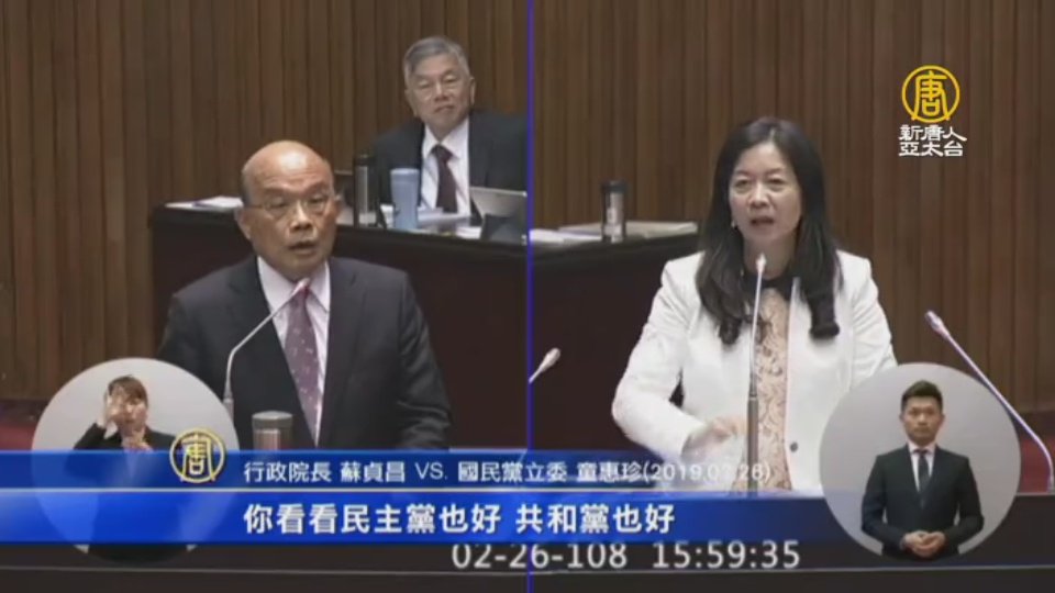 行政院長 蘇貞昌(2019.02.26):「你看看民主黨也好共和黨也好,沒有像台灣,中國國民黨這樣,像貴委員,拼命把台灣今天處境,都是民進黨錯都政府錯,中共都沒錯。」