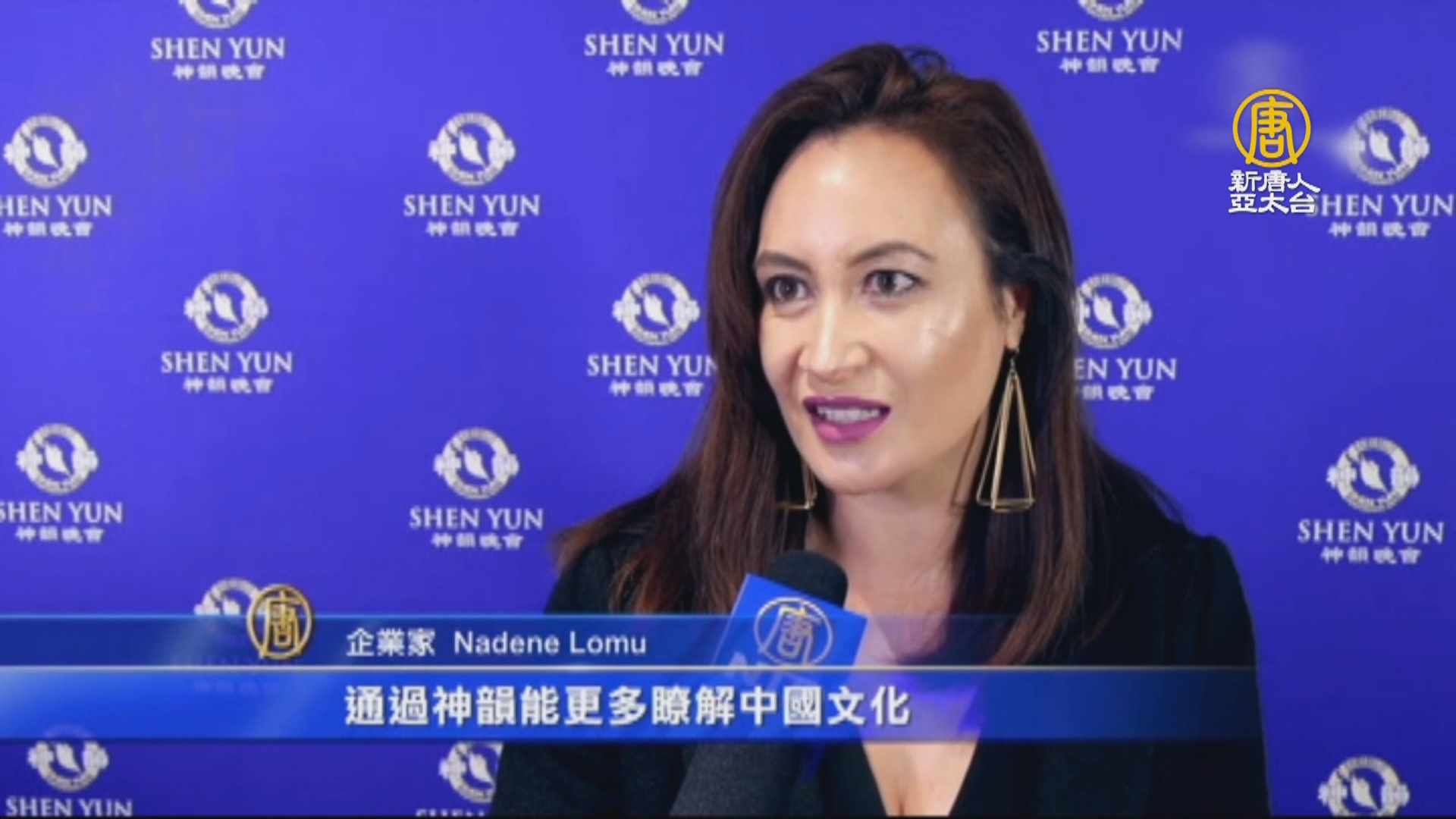 企業家 Nadene Lomu:「我很?幸通過神韻能更多了解中?文化,和那些很古老很特別的故事。神韻把這些分享出來,并在舞台上演繹出來,真是非常獨特。」