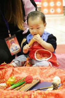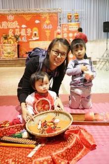 親子館館長翁紫銘說,結合傳統習俗,舉辦「抓周」活動。在米篩上擺放筆、算盤、錢幣、書籍等18樣「度晬」(滿周歲)物品,由寶貝抓取物品,讓家長預測寶貝未來的興趣與性向。不過現在的抓周活動,已轉變為親友與親子間的一種趣味互動,讓家長及寶貝能擁有美好回憶和紀念。