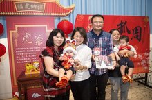 在25組報名抓周的親子中,蔡志國夫婦是102年參加集團結婚、由黃敏惠見證的新人,他們昨天也帶雙胞胎寶寶來參加活動,場面相當溫馨。