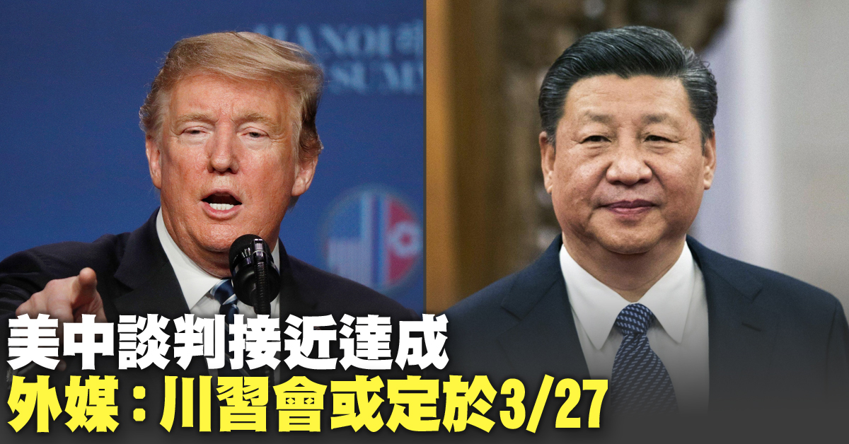 《華爾街日報》週日報導,美中貿易談判進入最後階段,北京將降低美國農業、化學、汽車等產品的關稅及其他限制,而華盛頓則考慮取消大部份、甚至全部,從去年開始對中國商品的制裁。報導並指出,美國總統川普與中國國家主席習近平,可能在3月27號左右,舉行川習會,屆時雙方可能將達成正式協議。外界猜測,3月底的川習會可能會在兩人首次舉行峰會的海湖莊園(Mar-a-Lago)舉行。