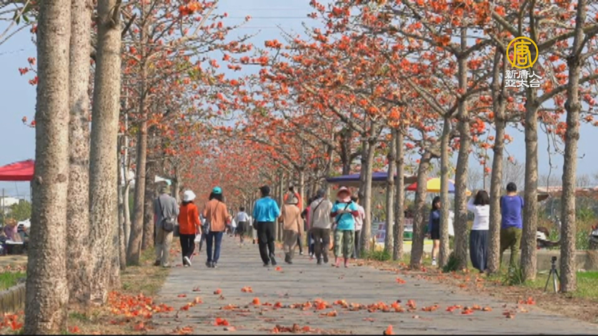 【新唐人亞太台 2019 年 03 月 04 日訊】曾被譽為世界最美的15條花海街道之一,在台南的林初埤木棉花道,有火紅色的鮮花 ,超夢幻,倒映在綠油油的稻田裏,堪稱世界級美景,目前盛開約八成,四天連假湧入數萬遊客,前來打卡賞花和拍照。