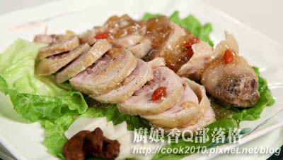 9. 雞凍可以切塊,跟著雞腿一起上盤。也可拌麵加青葱,別有一番滋味。