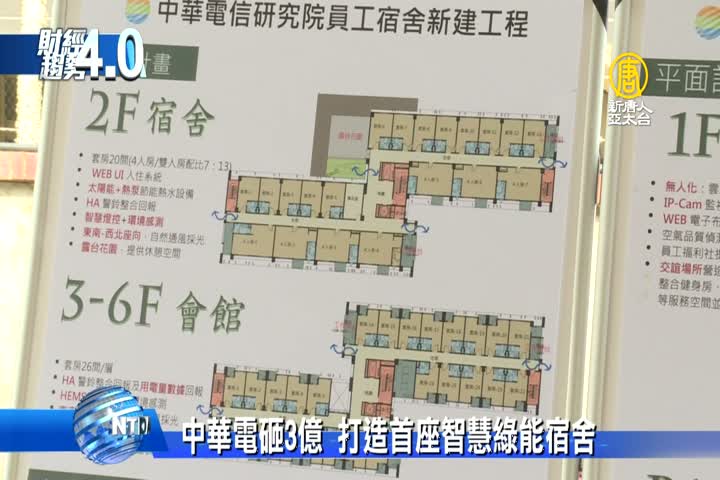 【新唐人亞太台 2019 年 04 月 06 日訊】歡迎回來。為了吸引高端科技人才,中華電信斥資近3億元,在桃園楊梅中華電信研究院內,打造智慧綠能員工宿舍,導入智慧家庭、物聯感測、建物管理等先進技術,預計 將在2021 年完工。