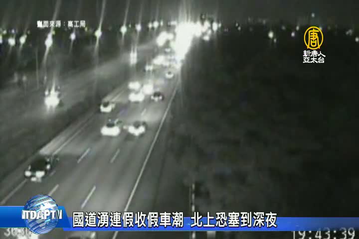 【新唐人亞太台 2019 年 04 月 06 日訊】再來關心,清明節連假第3天,國道湧現北返車潮,一路從中午塞到晚上,國5宜蘭北上到坪林塞爆,預估得塞到深夜才能紓緩。高工局表示,明天(4/7)是清明連假收假日,預估下午仍有一波北上車潮,易塞路段包括國1北上西螺至埔鹽系統、新竹系統至竹北、國3北上關西到大溪、大山到香山、竹山至中興以及國5宜蘭至坪林等,行車時間為平日的3倍到7倍,提醒用路人可利用明日凌晨0時至10時暫停收費時段,避開收假日下午尖峰時段。