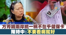 方芳喊兩岸統一稱不在乎健保卡 陳時中:不要看病就好