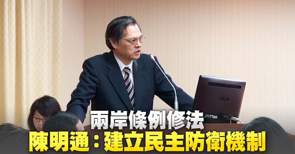 陸委會主委 陳明通:「先建立制度,在制度的保障之下,對不對,尤其北京那一國兩制台灣方案,這個統一的進程已經兵臨城下了,我們不在建立這個制度,怎麼去捍衛國家的主權跟尊嚴呢?」