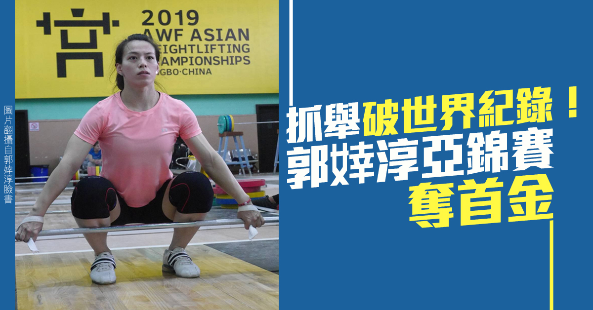 台灣舉重好手郭婞淳,今天在2019年亞洲舉重錦標賽女子59公斤量級決賽,她在先登場的抓舉,第3次把成功舉起106公斤,打破她自己所保持的105公斤世界紀錄。
