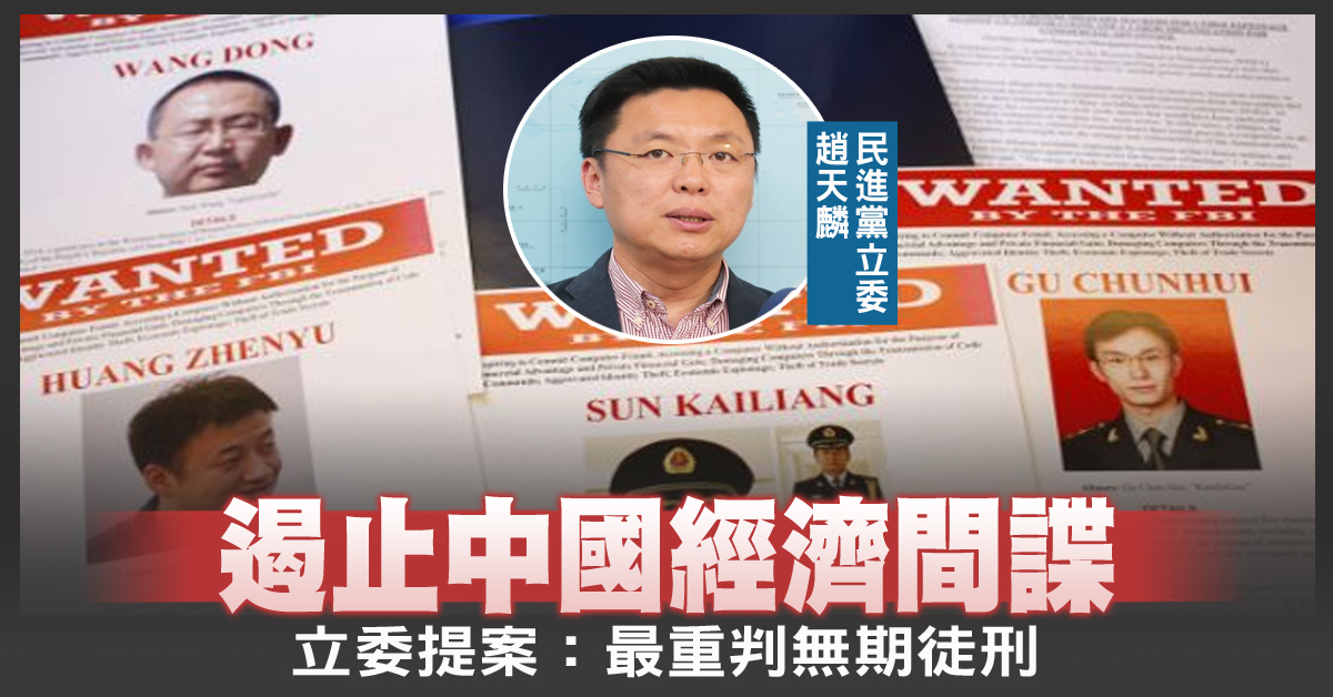 民進黨籍立法委員趙天麟今天表示,為解決中國經濟間諜抓不怕問題,已提案修正「營業秘密法」,將刑責從現行的1至10年提高到10年以上、最重無期徒刑,以重刑遏止相關犯罪。