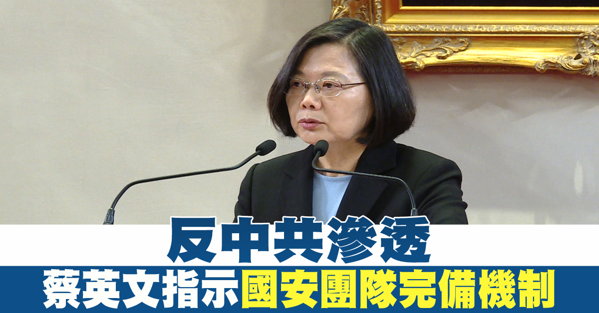 中華民國總統 蔡英文:「我今天特別要求國安團隊,針對中共對台灣的滲透、統戰,特別是近期曝光,擁有媒體的財團接受中國資金或受中國影響,以及國民高度關切的假訊息問題,要盡速完備反滲透、反統戰的機制,維護台灣主權以及國家安全。」