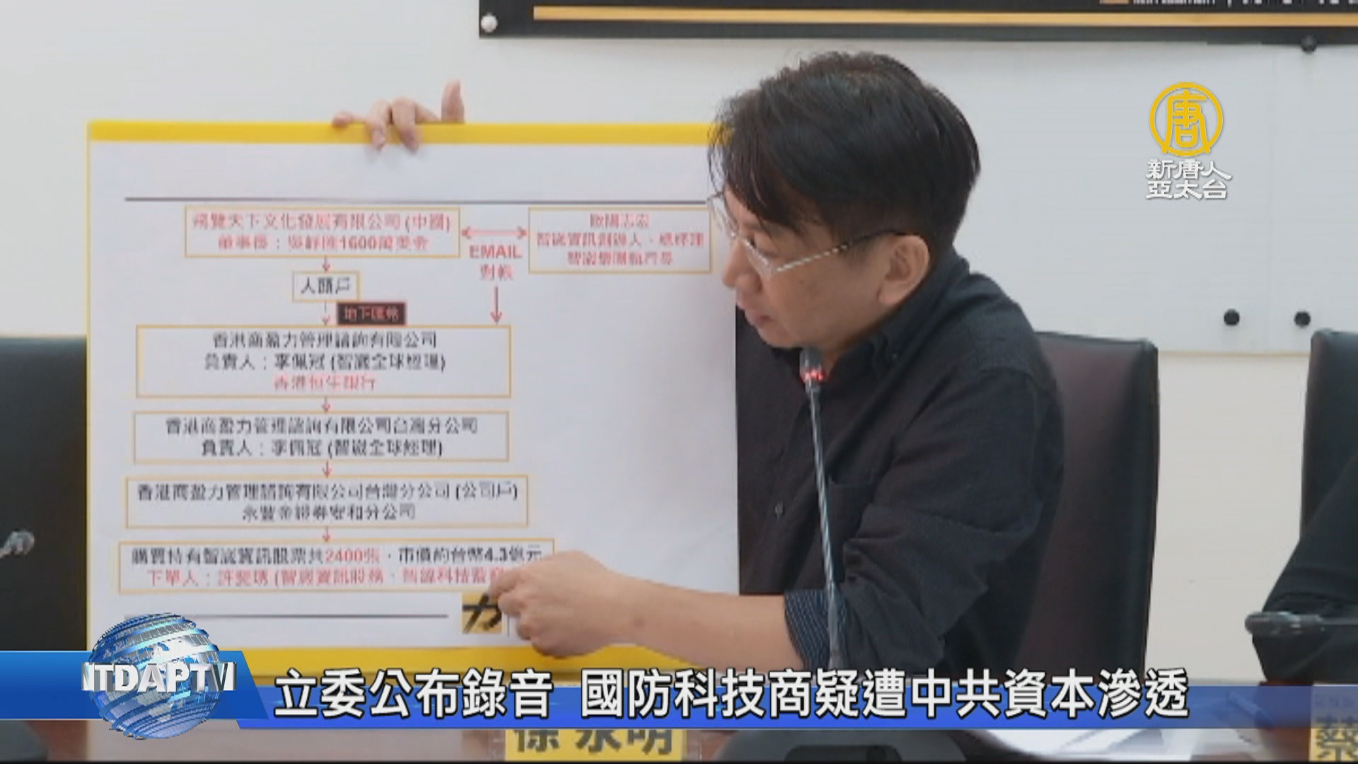 【新唐人亞太台 2019 年 05 月 14 日訊】被指曾研發中華民國國軍訓練軟體的體感設備商,位於高雄的智崴科技公司,被檢舉遭到中共新華網大力支持的大陸「飛覽天下」公司董事長,用人頭入股。時代力量立委徐永明(14日)召開記者會,揭露金額達1600萬美元,公布電話錄音證據、智崴跟北京對帳的郵件。金管會出席回應。