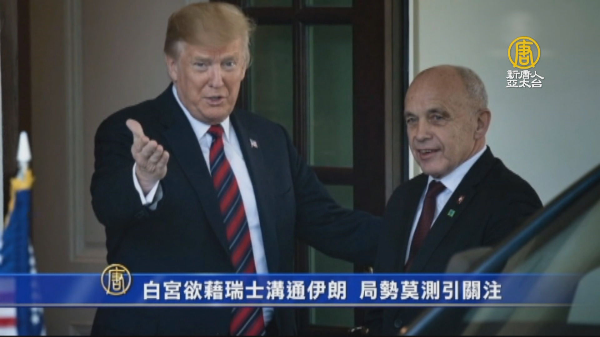 週四,川普總統在白宮會見瑞士總統毛瑞爾。有消息顯示,白宮希望藉由瑞士建立與伊朗的溝通管道。川普在白宮外等待來賓時,媒體迫不及待喊話提問。