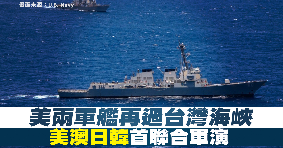 美兩軍艦再過台灣海峽 美澳日韓首聯合軍演