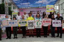 嘉義縣長翁章梁、新港鄉長林茂盛和議員們共同宣達「吃得下、吃得夠、吃得對、吃得巧」3好1巧概念。(嘉義縣政府提供)