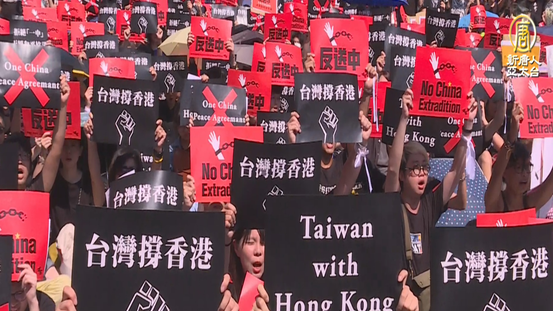 【新唐人亞太台 2019 年 06 月 17 日訊】好,香港昨天兩百萬人上街反送中,紐約與台北也同步舉辦聲援活動;台灣民間團體在立法院外,集結超過萬人拿標語聲援,齊撐香港反對送中條例,譴責港府暴力侵犯人權,並呼籲台灣各政黨與總統擬參選人,應明確承諾「拒絕一中和平協議」,團結守護台灣的民主自由。
