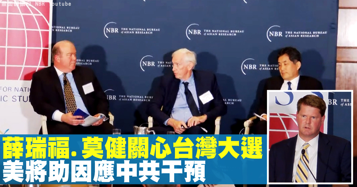 薛瑞福在華府智庫(NBR)演講,主動提到,美國會協助夥伴因應威脅,例如台灣的大選。AIT主席莫健也表達關心。