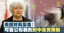 美國財長葉倫:可能公布新的對中投資限制