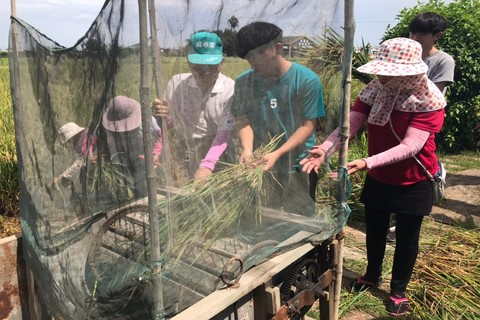 民眾體驗傳統稻米收割時的竝伴精神及在地鄉土文化。(嘉義縣政府提供)