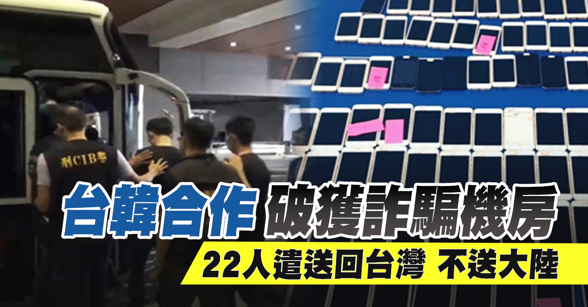 台韓合作破獲詐騙機房 22人遣送回台不送陸|台灣速速看