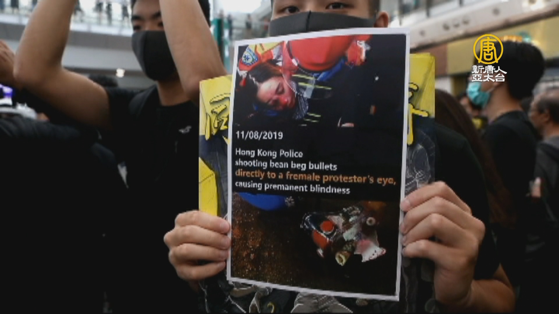 港人發起「警察還眼」行動,抗議星期日晚間,港警對港人執行毫無人道的血腥鎮壓。最令人心驚的,是一名女性因為警察近距離開槍,護目鏡被射穿,右眼中彈可能從此失明。