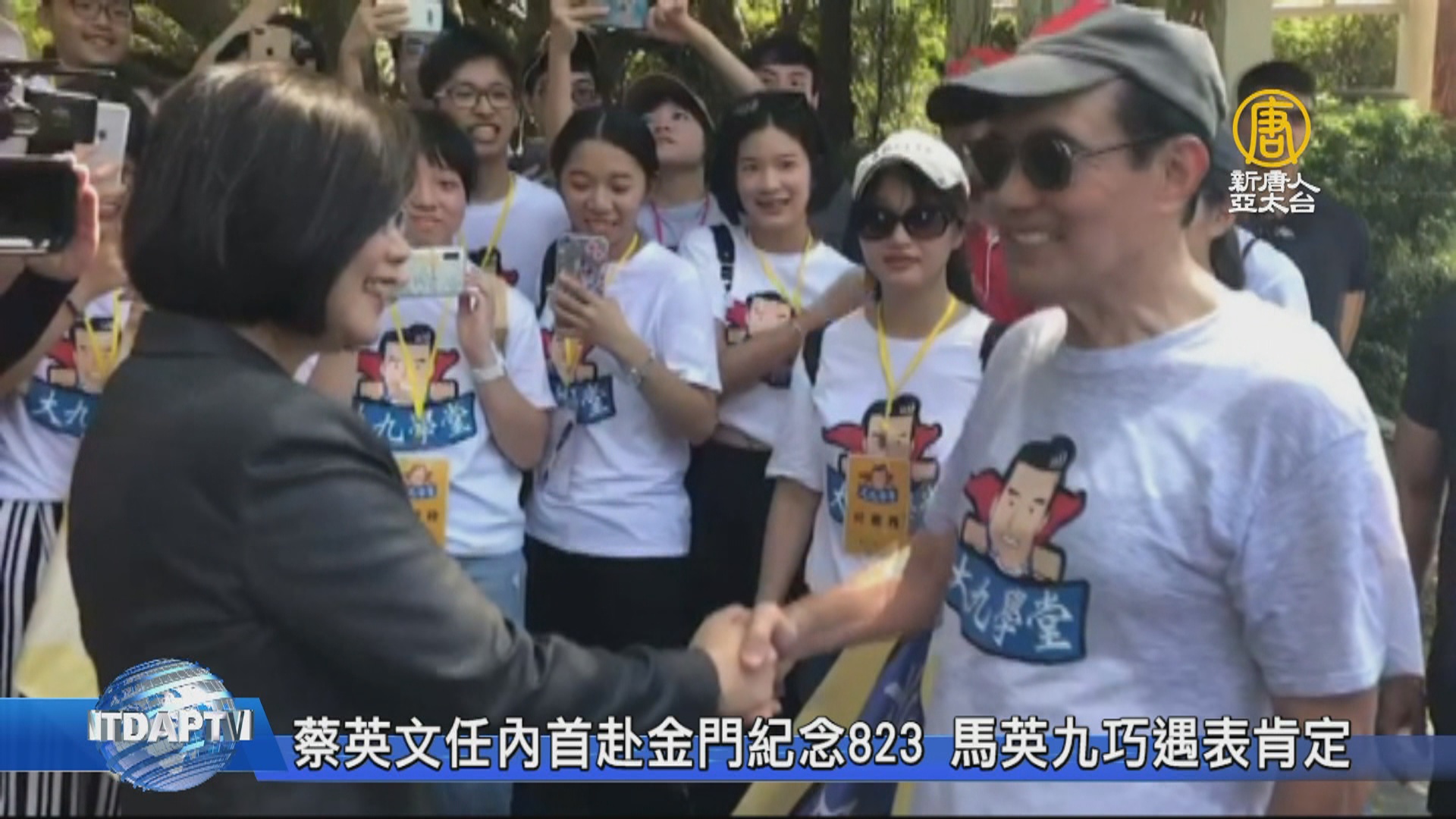 【新唐人亞太台 2019 年 08 月 23 日訊】823砲戰61週年,總統蔡英文前往金門參加823中樞紀念儀式,在太武山悼念陣亡官兵,這也是蔡英文上任後,首次參加823紀念活動。蔡英文表示,沒有當年軍民浴血奮戰,就不會有今天的中華民國台灣。而巧的是,蔡英文隨後在海印寺參拜,碰上前總統馬英九,兩人也握手寒暄。
