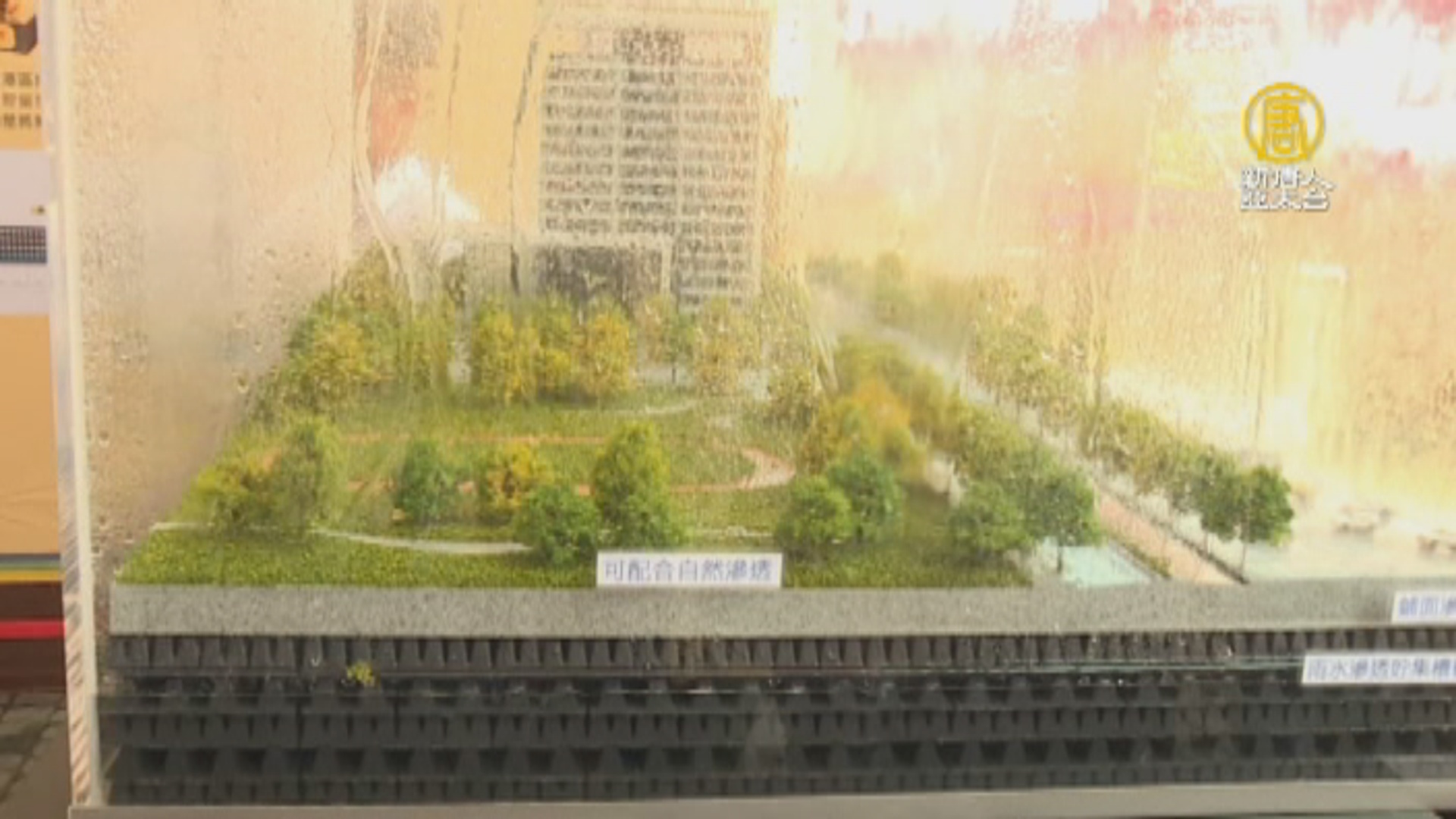 桃園舉辦「全國下水道設備展」,廠商展出雨水積磚,將雨水儲存在地底下,有保水、滯洪的功能。使用樹穴結構填入泥土,具有淨化水質的功能。