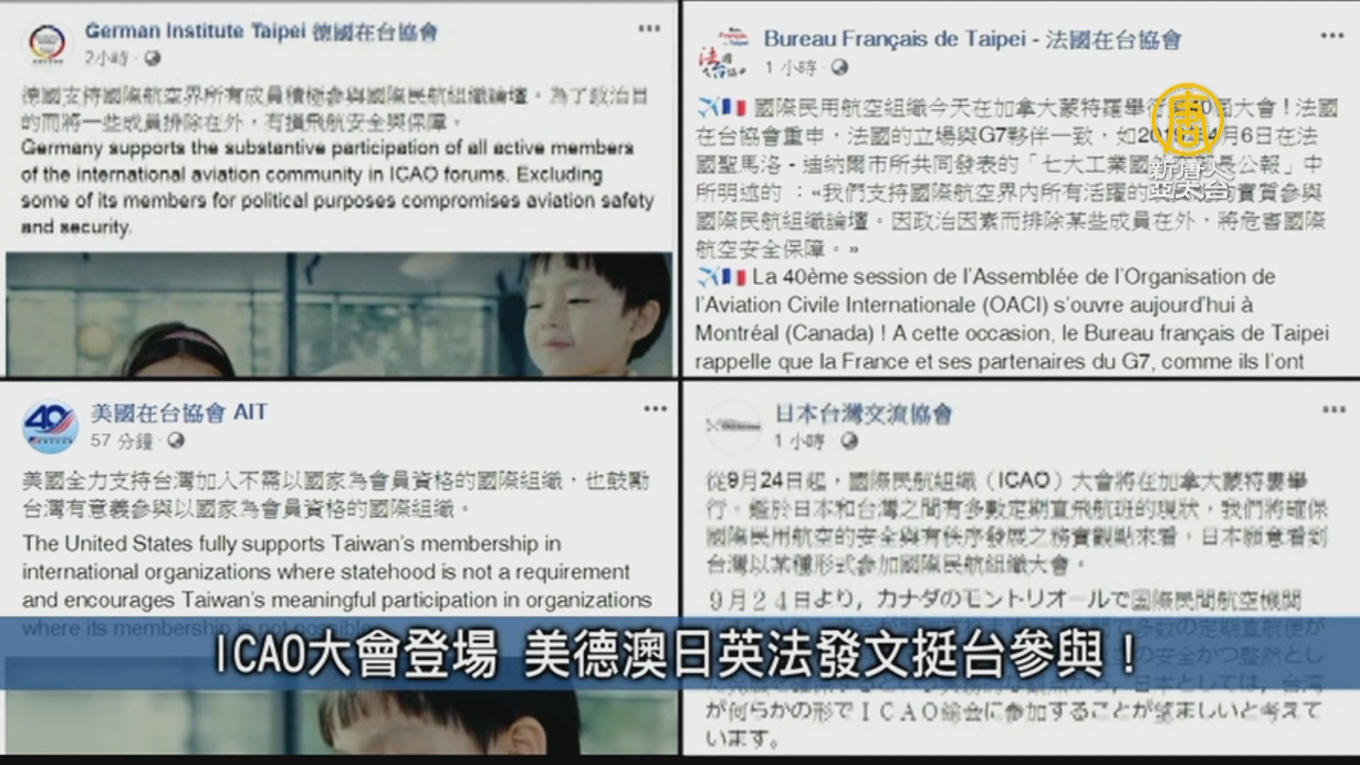 【新唐人亞太台 2019 年 09 月 24 日訊】ICAO大會登場 美德澳日英法發文挺台參與!