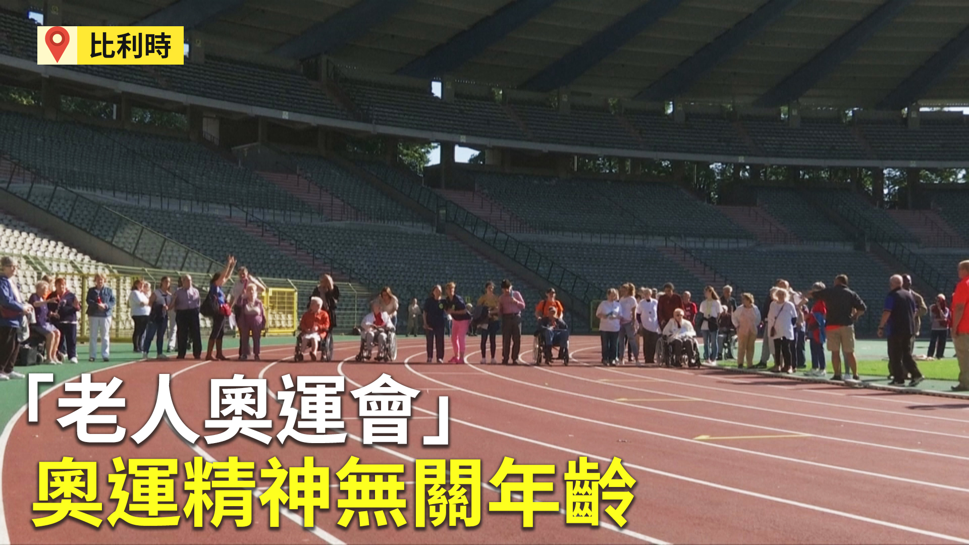就算是坐著輪椅,或是要靠人攙扶,這些老爺爺、老奶奶還是手拿接力棒,一聽到起跑的指示就奮力往前衝。在比利時首都布魯塞爾的國家體育場,舉辦了一場「老人奧運會」,共有148名當地年長者參與,在家人和看護的陪同下,完成接力賽和射箭比賽。