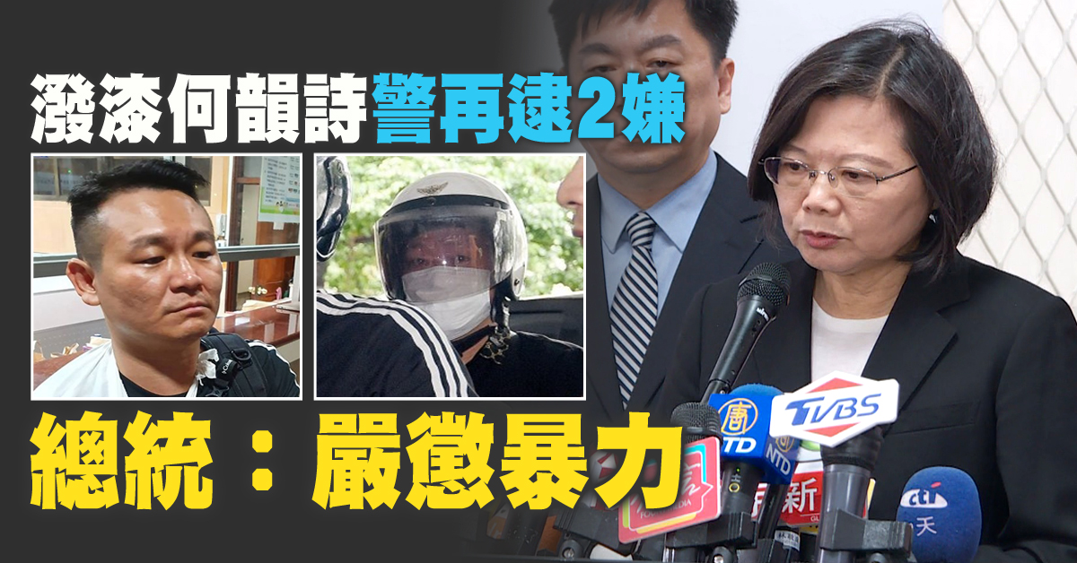 潑漆何韻詩警再逮2嫌 總統:嚴懲暴力