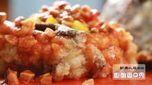 8. 芡汁淋在魚身上,再灑上彩椒、松子完成。