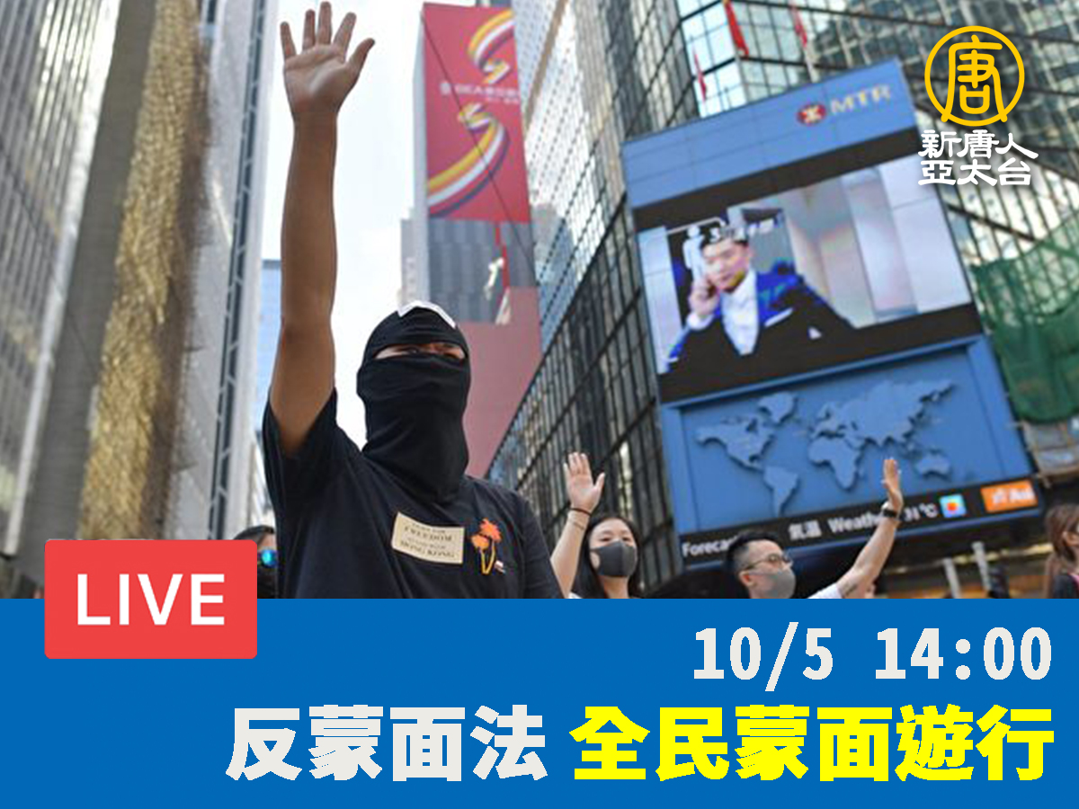 【新唐人亞太台 2019 年 10 月 05 日訊】繼港府推出《禁蒙面法》激起全港18區民眾上街抗議後,週六(10月5日)港人再發起「全民蒙面遊行」,新唐人亞太電視台將進行全程追蹤和網絡直播。