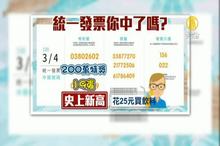 2019-06-04 22:05:44財政部公布3、4月期統一發票中獎清冊,共有18位幸運兒獲得千萬大獎,200萬特獎多達19人,更創史上最高紀錄。有7人花不到50元就獲獎千萬,其中甚至有人只花8元買一份報紙。