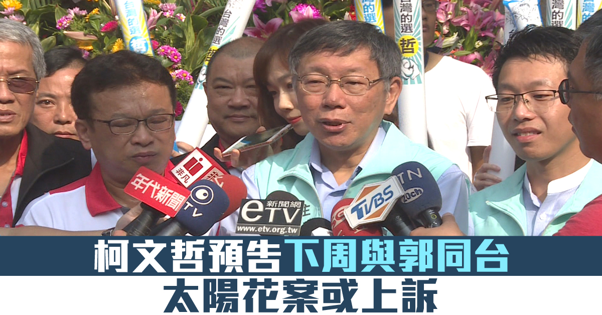 柯文哲預告下周與郭同台 太陽花案或上訴