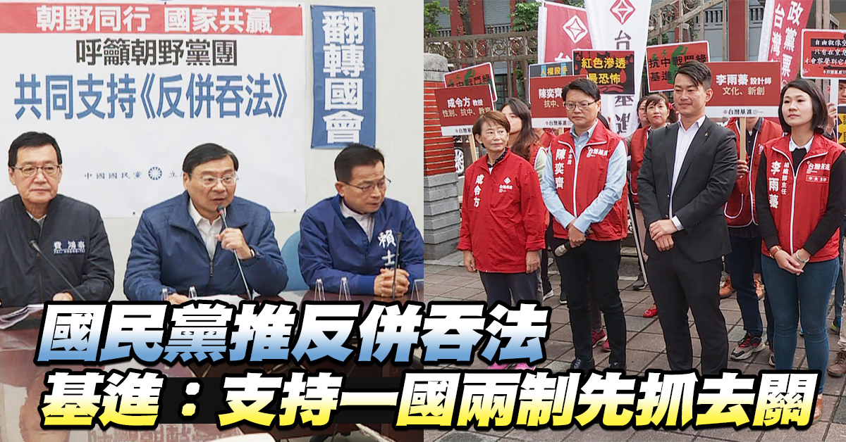 國民黨推反併吞法 基進:支持一國兩制先抓去關