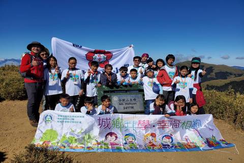 四校城鄉學童,攻頂合歡山。(校方提供)