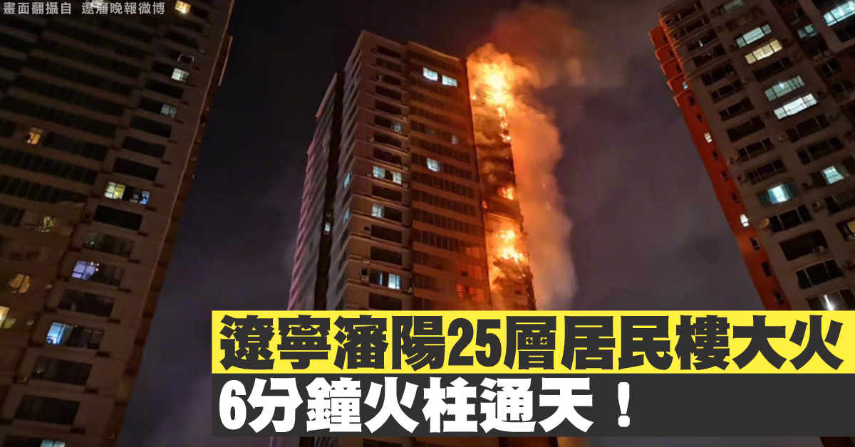 遼寧瀋陽25層居民樓大火 6分鐘火柱通天!