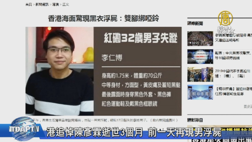 【新唐人亞太台 2019 年 12 月 20 日訊】香港反送中運動的少女陳彥霖,過世三個月了。她當初被發現赤裸浮屍在香港油塘海邊。香港人今天為她舉行追思會,死因真相仍然不明。