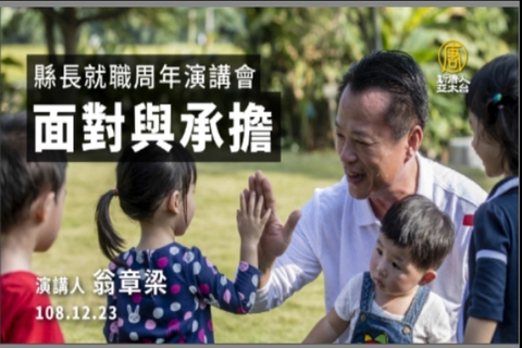 【新唐人亞太台 2019 年 12 月 23 日訊】學運領袖出身的嘉義縣長翁章梁,就職即將屆滿周年,今天(23日)上午在創新學院以「面對與承擔」為主題,邀請產學界、觀光業及教育界代表齊聚,發表長達一個半小時演說。翁章梁表示,馬稠後後期動土,啟動轉型農工大縣,後續還有中埔鄉公館及水上鄉南靖農場2處工業區開發,以及民雄鄉航太基地;未來會帶領縣府團隊全力以赴,勇敢轉型。