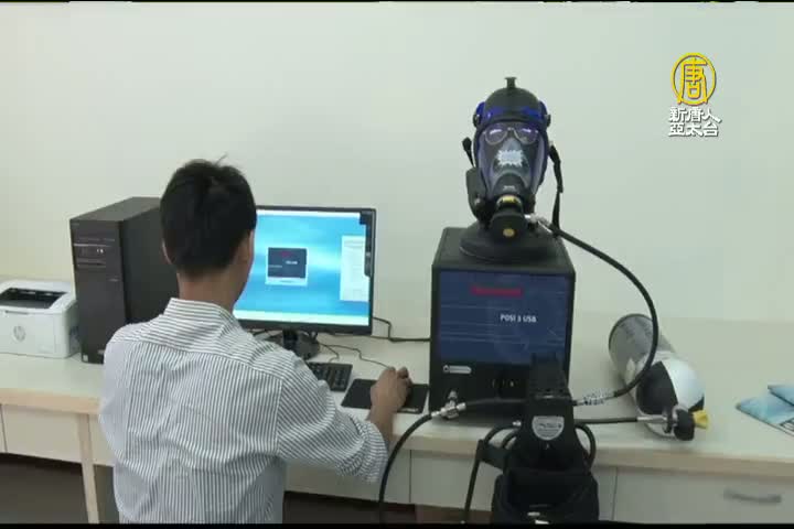防護衣漸漸充氣飽滿,在精密儀器監控下,可以正確評估是否達到安全標準。還有空氣呼吸器面罩氣密性測試,確保打火弟兄救災時的裝備安全。
