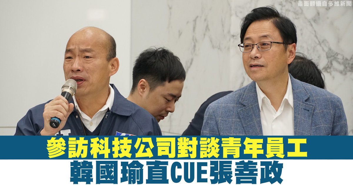 與年輕科技人對談,直接把話筒轉給國民黨副總統候選人張善政,國民黨總統候選人韓國瑜27日上午前往科技公司總部參訪,並且參加「青年國是論談」,近距離與科技人互動,回答發展科技業的相關政策,但大多都只由張善政回應,韓國瑜乾坐在一旁。