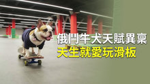俄鬥牛犬天賦異稟 天生就愛玩滑板