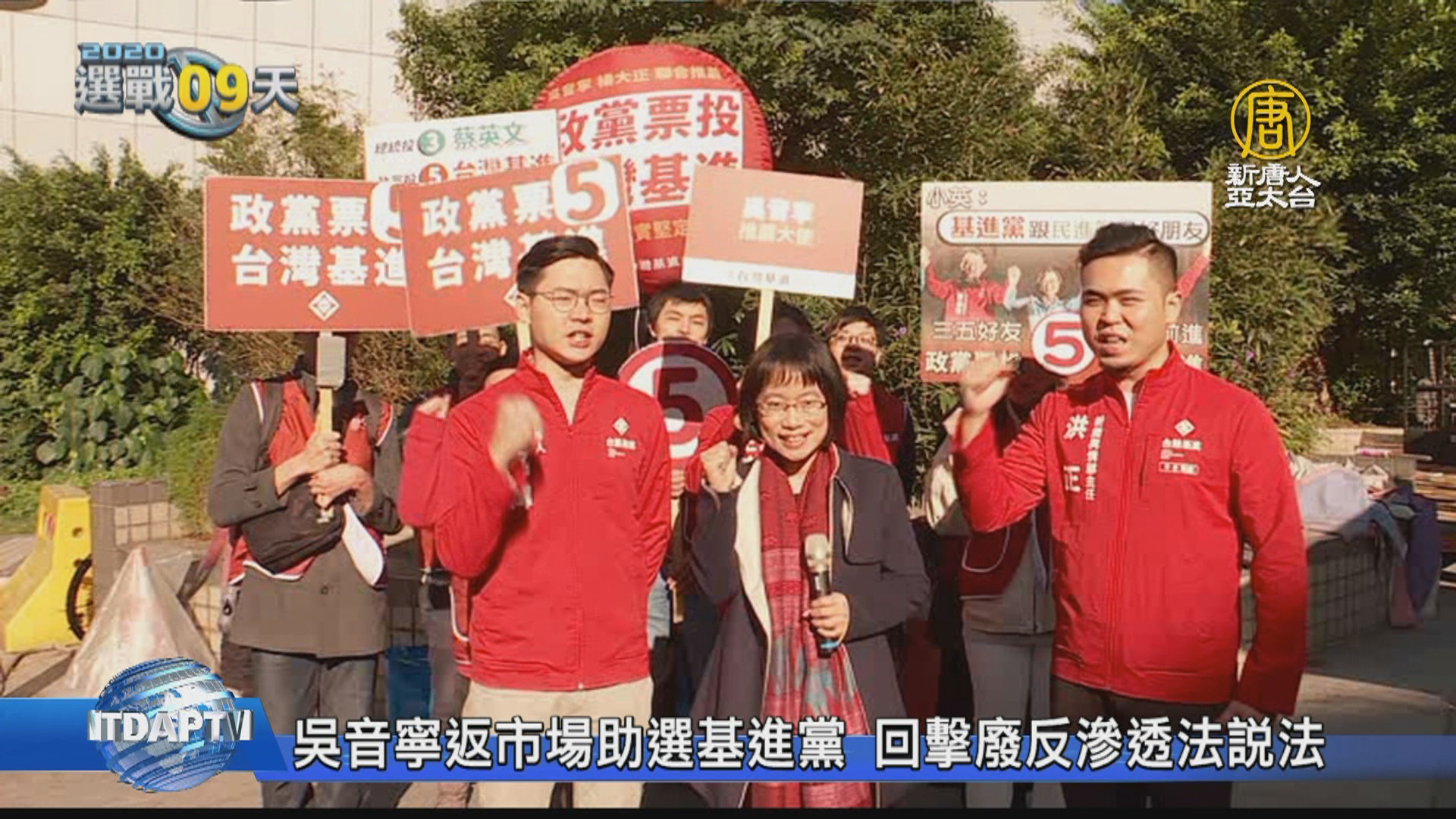 【新唐人亞太台 2020 年 01 月 02 日訊】北農前總經理吳音寧今天(2日)陪同台灣基進,一起到台北濱江市場掃街拜票,為新興小黨爭取政黨票。對於國民黨副主席郝龍斌昨天(1日)喊話,如果國民黨在國會拿下立委過半席次,一定把反滲透法廢掉或重新修法。吳音寧表示看法。