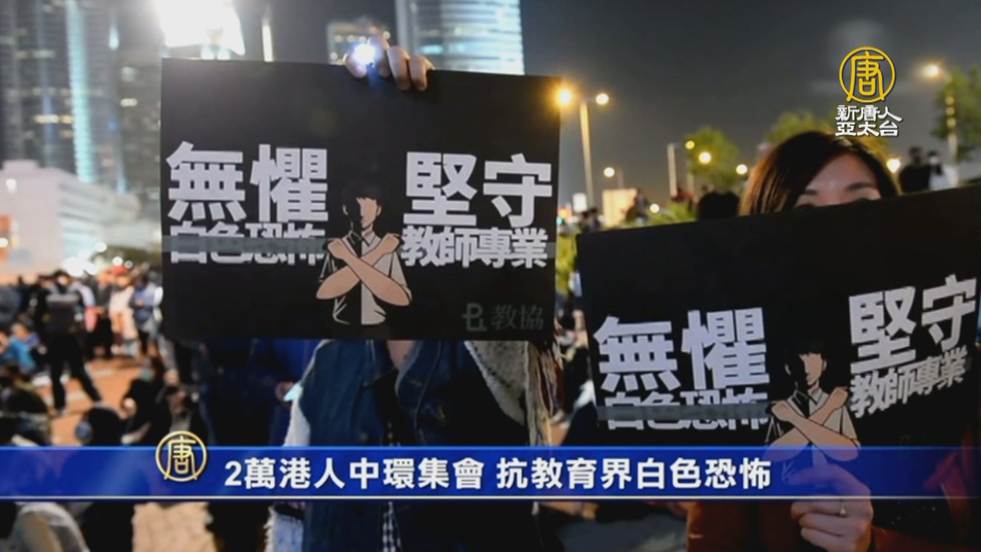【新唐人亞太台 2020 年 01 月 04 日訊】香港抗爭運動以來,至少80名教師被捕,教育局長早前威脅,如果學校不配合調查,或取消校長資格,引發市民不滿。香港教協,週五在中環集會,抗議對教育界的打壓。