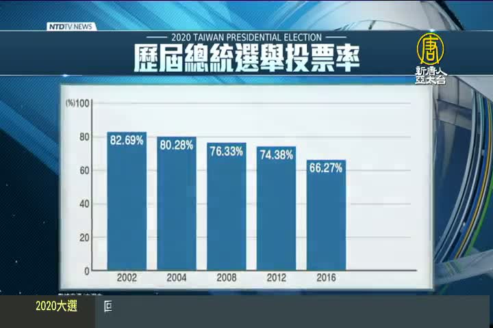 【新唐人亞太台 2020 年 01 月 11 日訊】總統立委選舉投票今天登場,全台各投票所都陸續出現排隊人潮,等待投票,從歷屆總統大選投票率來看,台灣投票率逐年下降,從2000年的82.69%一路降到2016年的66.27%,但今年大選藍綠廝殺激烈,加上天氣晴朗,帶動民眾踴躍投票,預估投票率會比上屆的6成6高出許多,有機會破7成。專家預估,總統候選人,或許要取得700萬票以上,才能確認當選。