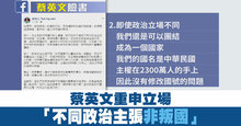 蔡英文重申立場「不同政治主張非叛國」