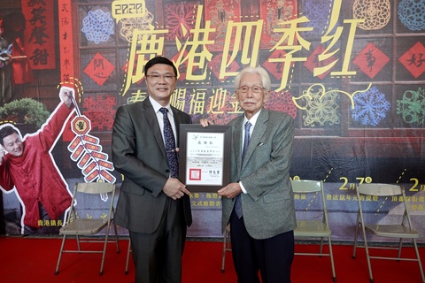 鹿港鎮長許志宏代表贈送感謝狀,感謝辜寬敏先生的善行。(鹿港鎮公所提供)