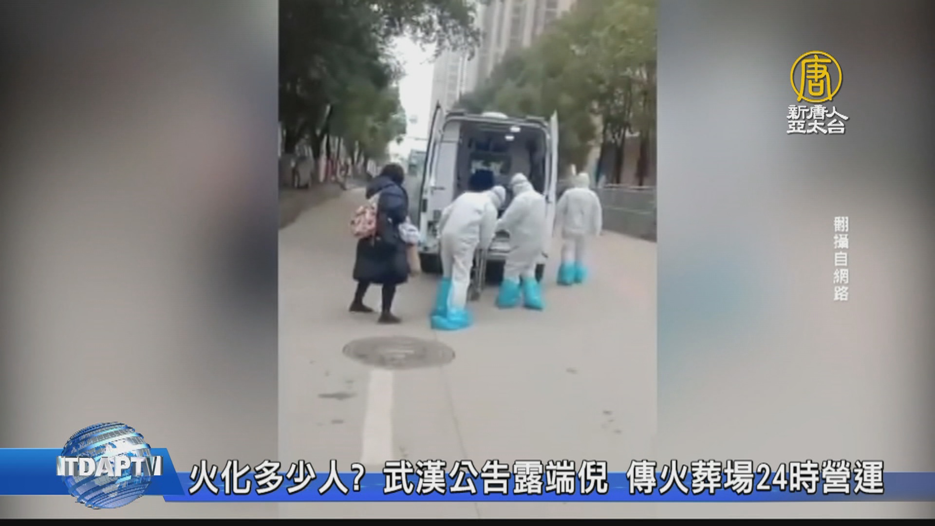 【新唐人亞太台 2020 年 01 月 30 日訊】武漢市日前(1月28號)宣布,對新型冠狀病毒肺炎的逝者遺體,免收火化費用,但公告中透露出殯儀車輛和人手不夠用,知情人士透露,實際死亡人數遠超官方數據,當地也比往常忙碌。網路上也傳出一張武漢當地殯儀館的公告,稱將提供「24小時服務」,讓外界質疑「倒底是為了什麼」。