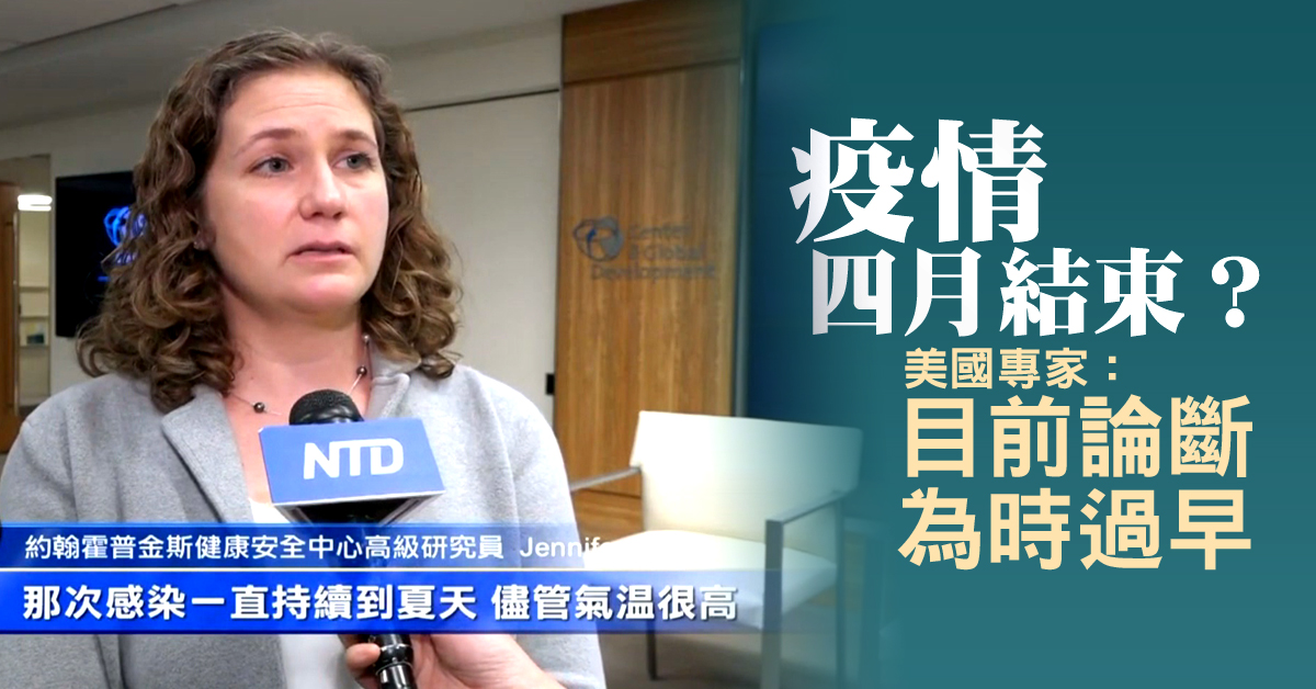 【新唐人亞太台 2020 年 02 月 15 日訊】中國衛健委專家組組長鍾南山日前表示,新冠病毒疫情本月在中國會達到高峰,並有可能在四月結束。 但美國專家認為﹐氣溫轉暖,未必能夠阻止病毒傳播﹐目前下結論,為時過早。