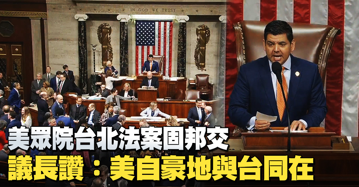 美眾院台北法案固邦交 議長讚:美自豪地與台同在